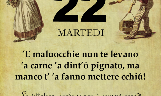 ‘O PRUVERBIO D’ ‘O JUORNO. Martedì 22 agosto 2017 22/08/2017 binews.it ATTUALITA', Il Proverbio del Giorno 0 ’E maluocchie nun te levano ’a carne ’a dint’ô pignato, ma manco t’ ’a fanno mettere cchiú! La iettatura, anche se non ti causerà grandi mali, certamente però non ti farà bene.