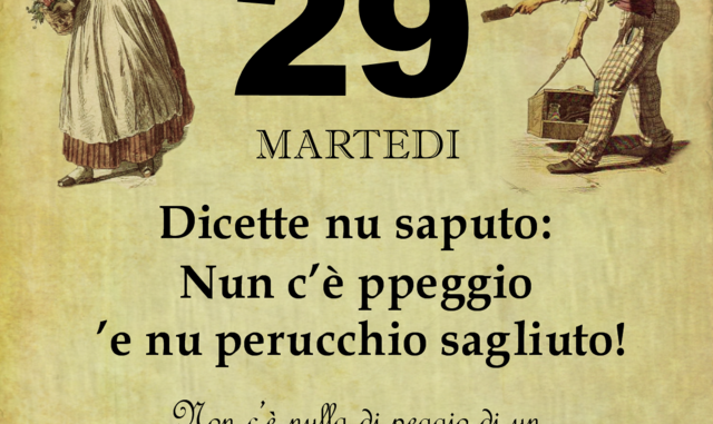‘O PRUVERBIO D’ ‘O JUORNO. Martedì 29 agosto 2017 29/08/2017 binews.it ATTUALITA', Il Proverbio del Giorno 0 Dicette nu saputo: Nun c’è ppeggio ’e nu perucchio sagliuto! Non c’è nulla di peggio di un pezzente arricchito.