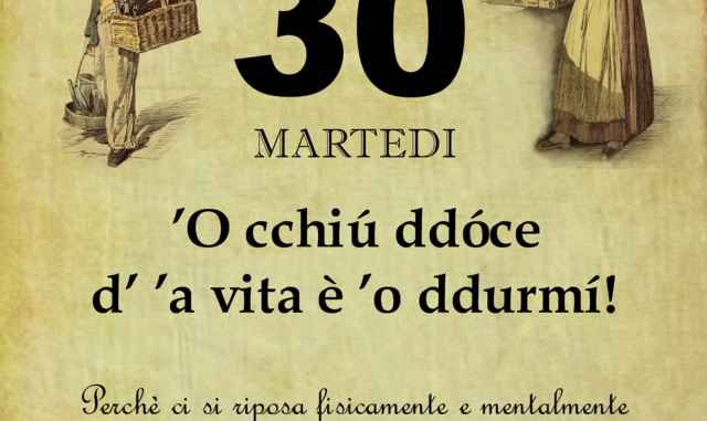 ‘O PRUVERBIO D’ ‘O JUORNO. Martedì 30 gennaio 2018 30/01/2018 binews.it ATTUALITA', Il Proverbio del Giorno 0 ’O cchiú ddóce d’ ’a vita è ’o ddurmí! Perchè ci si riposa fisicamente e mentalmente e, specie ai tempi d‘oggi non è poca cosa.