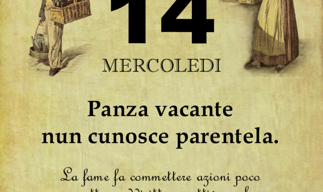 ‘O PRUVERBIO D’ ‘O JUORNO. Mercoledì 14 marzo 2018 14/03/2018 binews.it ATTUALITA', Il Proverbio del Giorno 0 Panza vacante nun cunosce parentela. La fame fa commettere azioni poco corrette o addirittura cattive anche nei confronti delle persone di famiglie.