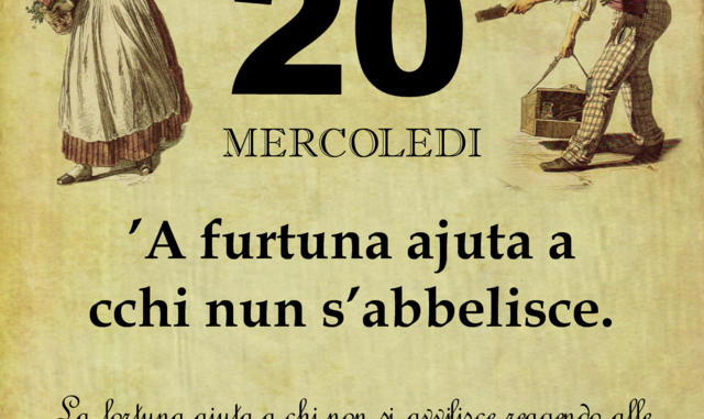 ‘O PRUVERBIO D’ ‘O JUORNO. Mercoledì 20 dicembre 2017 20/12/2017 binews.it ATTUALITA', Il Proverbio del Giorno 0 ’A furtuna ajuta a cchi nun s’abbelisce. La fortuna aiuta a chi non si avvilisce reagendo alle cattiverie del prossimo ed alle storture della vita.