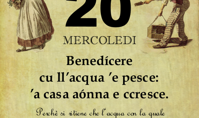 Benedícere cu ll’acqua ’e pesce: ’a casa aónna e ccresce. Perchè si ritiene che l‘acqua con la quale si lava il pesce, antico simbolo della divinità, porti buona fortuna.