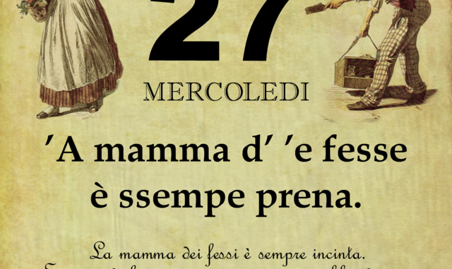‘O PRUVERBIO D’ ‘O JUORNO. Mercoledì 27 dicembre 2017 27/12/2017 binews.it ATTUALITA', Il Proverbio del Giorno 0 ’A mamma d’ ’e fesse è ssempe prena. La mamma dei fessi è sempre incinta. Siccome di fessi ce ne sono sempre in abbondanza, si dice che la mamma dei fessi è sempre incinta.