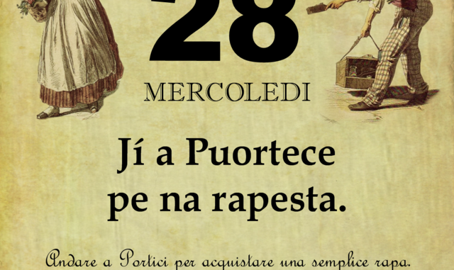 ‘O PRUVERBIO D’ ‘O JUORNO. Mercoledì 28 giugno 2017 28/06/2017 binews.it ATTUALITA', Il Proverbio del Giorno 0 Jí a Puortece pe na rapesta. Andare a Portici per acquistare una semplice rapa. Affaticarsi esageratamente per raggiungere un risultato miserabile.