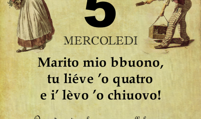 ‘O PRUVERBIO D’ ‘O JUORNO. Mercoledì 5 luglio 2017 05/07/2017 binews.it ATTUALITA', Il Proverbio del Giorno 0 Marito mio bbuono, tu liéve ’o quatro e i’ lèvo ’o chiuovo! Quando entrambi i coniugi collaborano a mandare in rovina la famiglia e la casa.