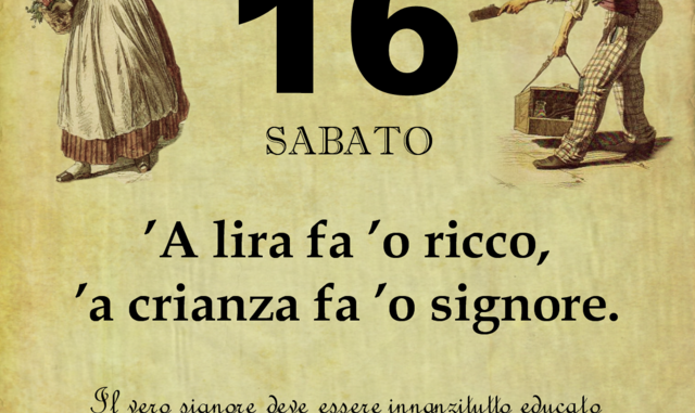 ‘O PRUVERBIO D’ ‘O JUORNO. Sabato 16 dicembre 2017 16/12/2017 binews.it ATTUALITA', Il Proverbio del Giorno 0 ’A lira fa ’o ricco, ’a crianza fa ’o signore. Il vero signore deve essere innanzitutto educato altrimenti sarà sempre e solo un semplice “arricchito”.