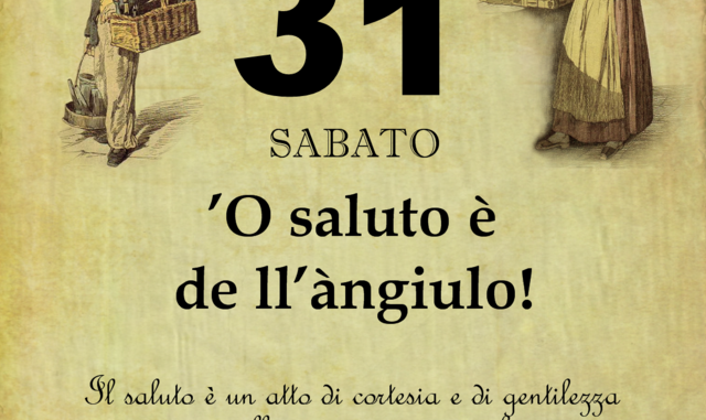 ‘O PRUVERBIO D’ ‘O JUORNO. Sabato 31 marzo 2018 31/03/2018 binews.it ATTUALITA', Il Proverbio del Giorno 0 ’O saluto è de ll’àngiulo! Il saluto è un atto di cortesia e di gentilezza proprio delle persone educate e buone.