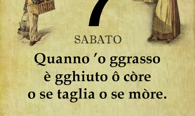 ‘O PRUVERBIO D’ ‘O JUORNO. Sabato 7 aprile 2018 07/04/2018 binews.it ATTUALITA', Il Proverbio del Giorno 0 Quanno ’o ggrasso è gghiuto ô còre o se taglia o se mòre. A mali estremi estremi rimedi.