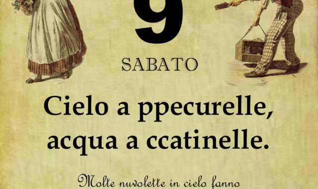 ‘O PRUVERBIO D’ ‘O JUORNO. Sabato 9 settembre 2017 09/09/2017 binews.it ATTUALITA', Il Proverbio del Giorno 0 Cielo a ppecurelle, acqua a ccatinelle. Molte nuvolette in cielo fanno prevedere un acquazzone.
