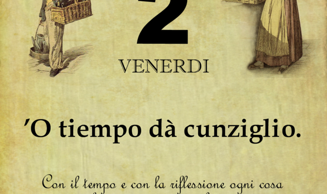 ‘O PRUVERBIO D’ ‘O JUORNO. Venerdì 2 marzo 2018 02/03/2018 binews.it ATTUALITA', Il Proverbio del Giorno 0 O tiempo dà cunziglio. Con il tempo e con la riflessione ogni cosa ha una riuscita migliore.