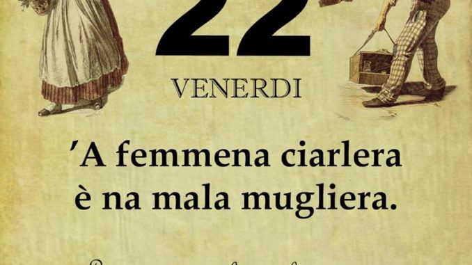 ‘O PRUVERBIO D’ ‘O JUORNO. Venerdì 22 dicembre 2017 22/12/2017 binews.it ATTUALITA', Il Proverbio del Giorno 0 ’A femmena ciarlera è na mala mugliera. La donna pettegola e maldicente non è certo una buona moglie.