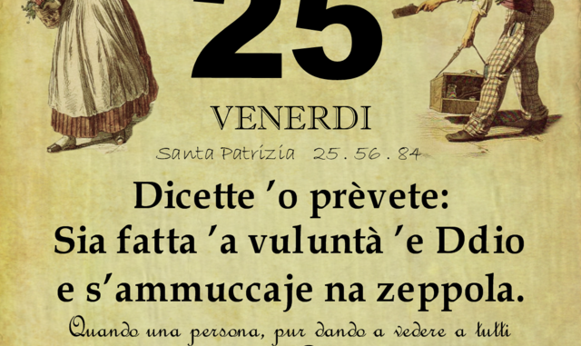 Dicette ’o prèvete: Sia fatta ’a vuluntà ’e Ddio e s’ammuccaje na zeppola. Quando una persona, pur dando a vedere a tutti di essere timorato di Dio è, sotto sotto, un egoista e pensa innanzitutto a sè stessa.