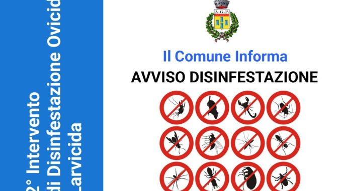 Le operazioni si svolgeranno nella giornata di lunedì 27 aprile, dalle ore 7:00 alle ore 15:00, e interesseranno l’intero territorio comunale. L’intervento rientra nelle attività di prevenzione e controllo della proliferazione di insetti, in particolare zanzare e altri parassiti, con l’obiettivo di tutelare la salute pubblica e migliorare la qualità della vita.