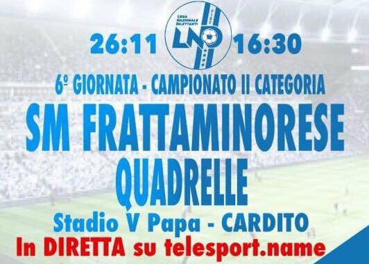 Domenica l’Asd Quadrelle avrà una sfida impegnativa, giocherà infatti a Cardito contro la Frattaminorese. Il match sarà trasmesso su telesport.name. Il Patron Ferrara ha dichiarato :”Sarà una partita dura, ma sono fiducioso, credo nei miei ragazzi”.