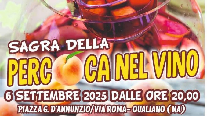 Qualiano si prepara a vivere una notte di gusto, musica e tradizione. Sabato 6 settembre, a partire dalle ore 20:00, Piazza Gabriele D’Annunzio e Via Roma si trasformeranno in un grande palcoscenico popolare per la quarta edizione della Sagra della Percoca nel Vino, organizzata dalla Pro Loco Qualiano in collaborazione con l’Ente Comune e con il patrocinio dell’UNPLI.