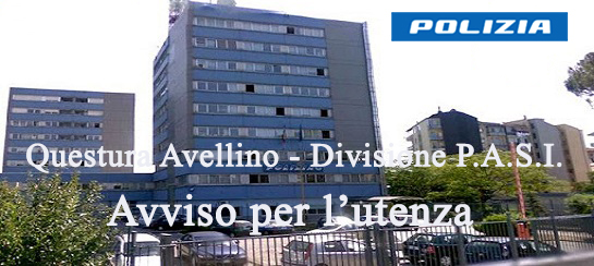 Mercoledì 14 febbraio venturo la città di Avellino celebra la festività di San Modestino patrono del capoluogo. Si porta a conoscenza dell’utenza che in tale giorno festivo, gli Uffici della Divisione di Polizia Amministrativa e Sociale e dell’Immigrazione della Questura, nonché gli sportelli adibiti alla ricezione/rilascio delle autorizzazioni di Polizia e istanze passaporto, resteranno chiusi. Il servizio sarà invece regolarmente svolto presso gli uffici dei Commissariati distaccati di Pubblica Sicurezza di Ariano Irpino, Lauro, Cervinara e Sant’Angelo dei Lombardi che osserveranno il normale orario di lavoro.