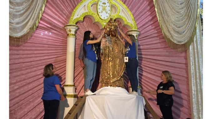 E’ più di un secolo che nel Vallo di Lauro, esattamente a Quindici, ogni anno si svolge in occasione della festa in onore della Madonna delle Grazie, la tradizionale vestizione. Sulla statua della madonna nera vengono poggiati chili e chili di oro, ricevuti dai fedeli negli anni, e si ci prepara per la tradizionale processione in vista della festa dell’8 settembre quando la statua sarà portata dai cullatori tra le strade del paese. Noi abbiamo voluto assistere a questo suggestivo e tradizionale momento, ecco il video trasmesso in diretta oggi sabato 7 settembre 2019.