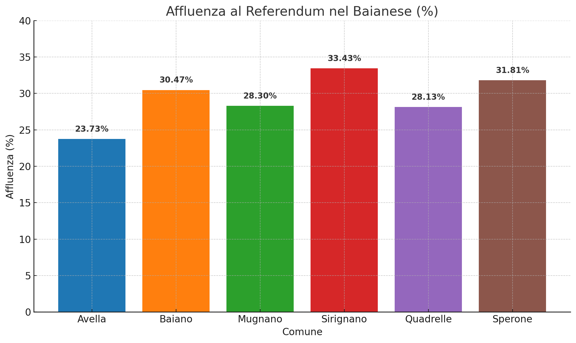 Affluenza piuttosto bassa nel Mandamento Baianese per il referendum che si è tenuto in questi giorni. I dati ufficiali registrano percentuali di partecipazione modeste in tutti i Comuni della zona, con nessuna amministrazione che ha raggiunto la soglia del 35%.
