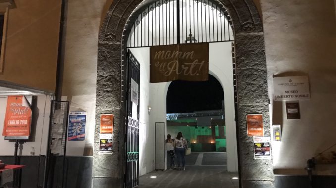 Indecisi tra Mamm’ell’Art dei nostri amici di Lauro e il Farcisentire dove andiamo ogni anno, decidiamo di andare ad entrambi. A Lauro la serata swing si presenta molto diversa da come ce la aspettavamo: in una cornice elegante, nel cortile di Palazzo Pignatelli, sedute al tavolo a lume di candela, un po’ di persone si godono l’aria fresca delle serate estiva. Esposti i disegni del 2 Luglio, giornata “Lauro a Fumetti” e presenti stand di cibo, con miele in favo, arrosticini ed altri prodotti tipici.