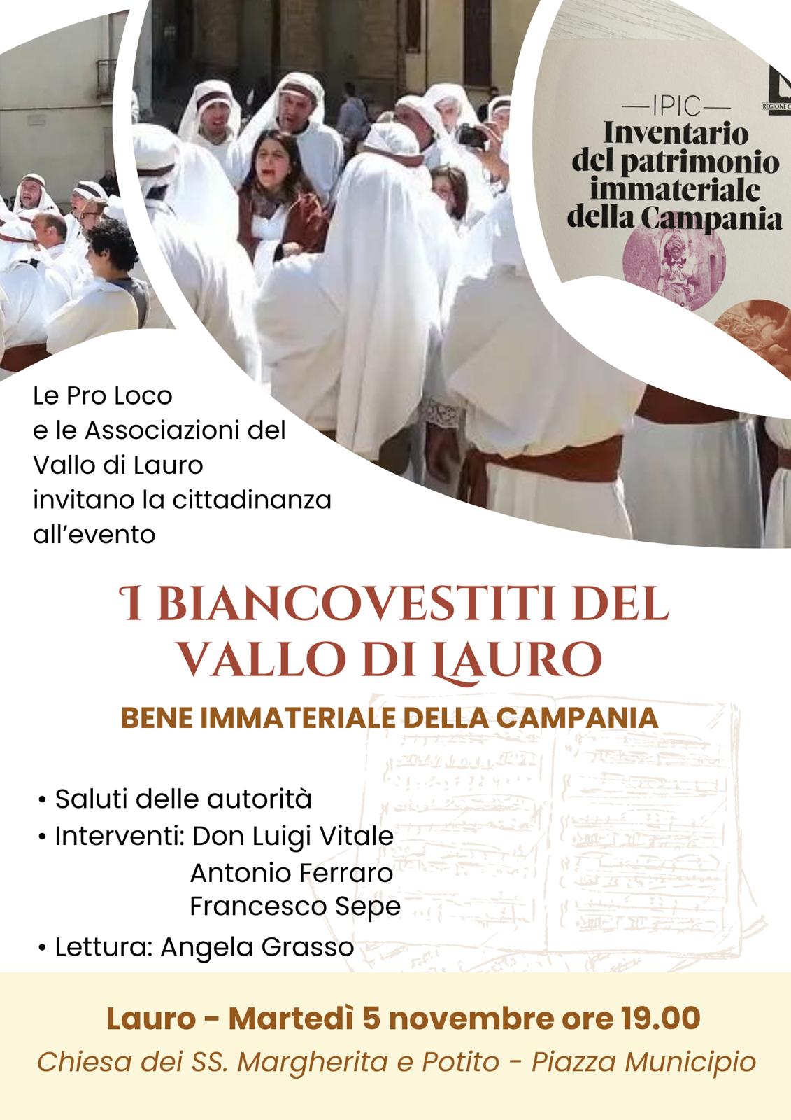 Il Vallo di Lauro si prepara a celebrare un traguardo significativo: “I Biancovestiti”, rituale tradizionale del territorio, sono stati ufficialmente riconosciuti come Bene Immateriale della Regione Campania nell’Inventario del Patrimonio Immateriale Campano (IPIC). Il prestigioso riconoscimento, sancito dal decreto dirigenziale n. 450 del 5 agosto 2024, rappresenta un importante attestato di valore per questa antica celebrazione, a testimonianza dell’importanza della tradizione e della cultura locali.