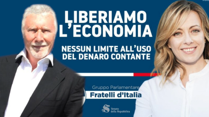 “Che vergogna! La possibilità di usare il contante, dal primo luglio, scenderà da 2999 euro a 1999 euro e, contemporaneamente, le commissioni sul pos per i pagamenti con carta di credito aumentano del 30%!