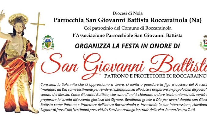 | Nei giorni su indicati, piazza San Giovanni sarà illuminata dalla ditta “Luminart Srl” di Tobia Boccia di Trecase (Na) La processione sarà animata dalla Banda musicale “Città di Sperone” Gli allestimenti e gli addobbi in Chiesa sono a cura di “Allestimenti & Addobi Gargiulo” di Antonio Gargiulo, Boscoreale. L’addobbo floreale in Chiesa è a cura di “Le Petit Jardin”, di Rosanna e Pasquale Saccomanno (Gigino) di Gargani di Roccarainola (Na) Le serate artistiche sono curate da “Musikandance” di Fiorello Napolitano, Scisciano (Na) e da Giovanni Vetrano di Roccarainola (Na) Il Direttivo dell’Associazione Il Parroco e l’intera Associazione parrocchiale San Giovanni ringrazia tutta la popolazione per la Collaborazione e Augura una Buona Festa Patronale 2018.