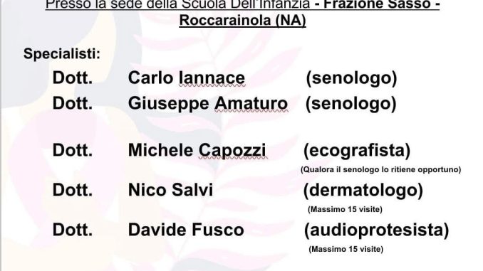 Una giornata interamente dedicata alla salute e alla prevenzione è in programma domenica 28 dicembre 2025 a Roccarainola, nella frazione Sasso, grazie a un’iniziativa che unisce associazioni, professionisti e istituzioni locali.