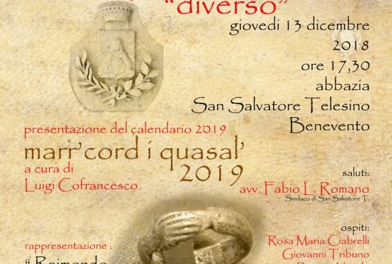 Giovedì 13 dicembre – ore 17.30 – l’Abbazia di San Salvatore Telesino ospiterà ‘un anno splendidamente “diverso”‘, presentazione del calendario “marr’cord i quasal” 2019 a cura di Luigi Cofrancesco.