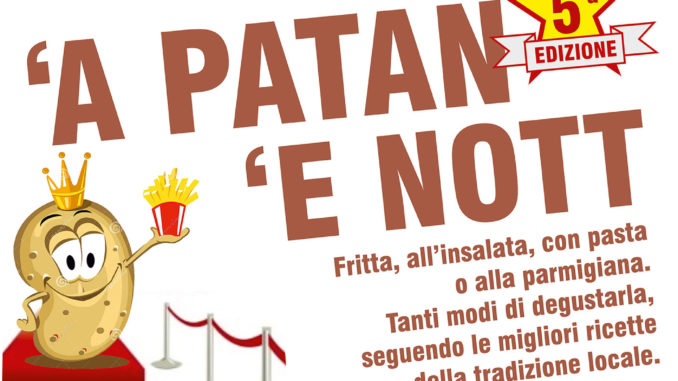 Rinviata, per motivi organizzativi, la quinta edizione dell’evento gastronomico, l’evento “‘A Patan ‘e Notte”, dedicato alla regina dell’Agro-Nolano: la patata. La manifestazione, il cui svolgimento era previsto, in origine, sabato 7 luglio presso il comune di San Vitaliano in Piazza Leonardo Da Vinci, si terrà, nella stessa location, sabato 21 luglio. L’associazione Populorum Progressio Onlus, organizzatrice dell’evento, in collaborazione con la Pro Loco de La Città di San Vitaliano, l’Azione Cattolica locale e l’associazione Unitas Onlus, vi aspetta per una serata di festa tra musica, spettacoli, e prelibatezze tutte a base di patate