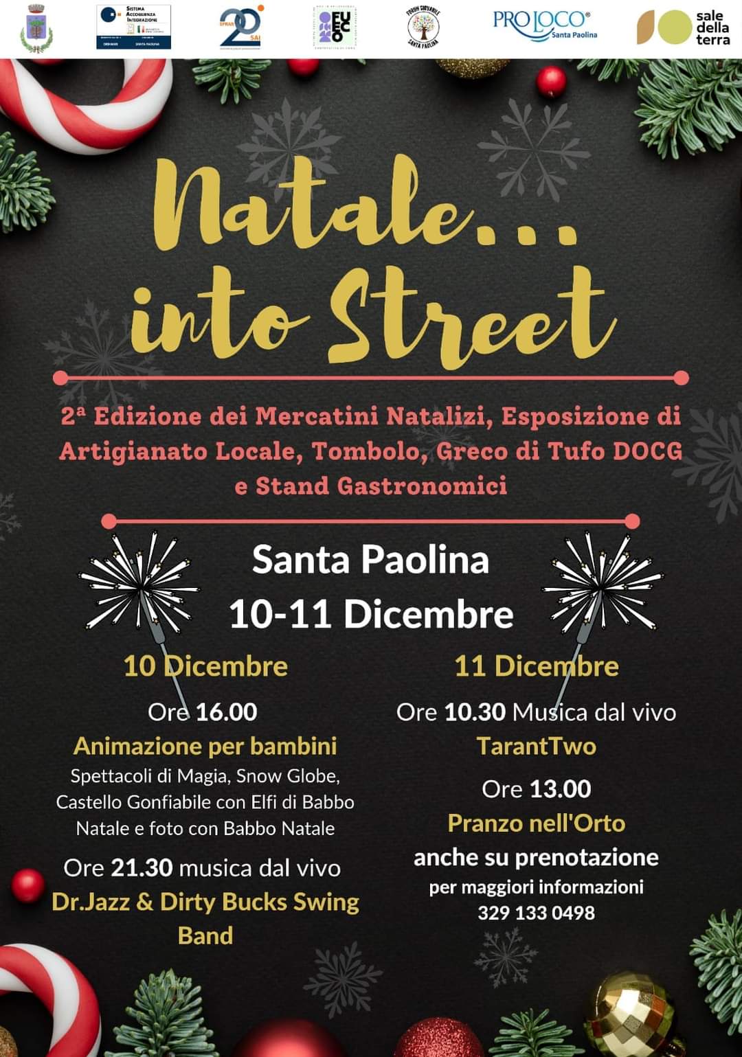 Si terrà nei vicoli di Santa Paolina domenica 11 e lunedì 12 dicembre la seconda edizione di “Natale Into…Street” con il Patrocinio del Comune di Santa Paolina organizzata dal Progetto SAI, dal Forum Giovanile e dalla Pro Loco, dalla Cooperativa FuEco in collaborazione con la Rete di Economia Sociale dei Piccoli Comuni del Welcome per iniziare a respirare il clima del Santo Natale.