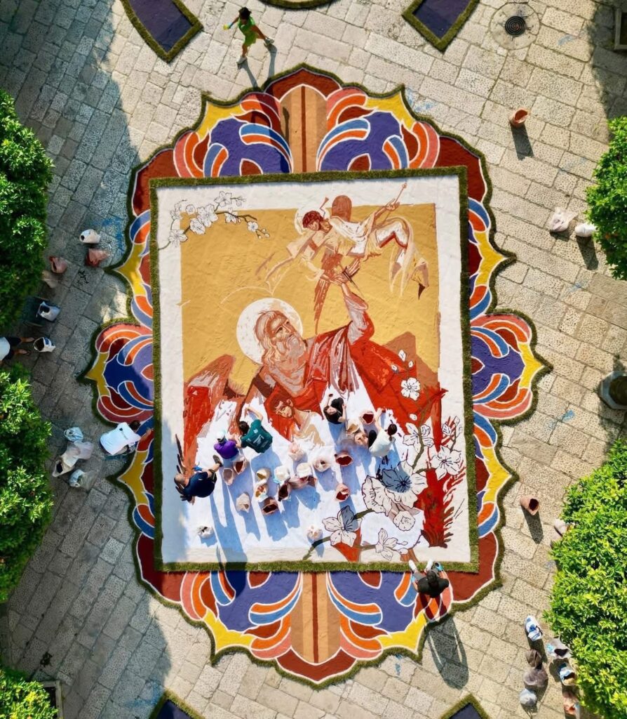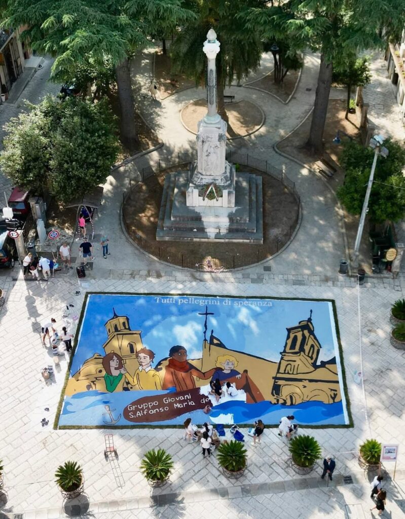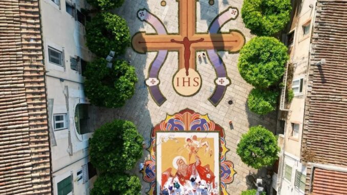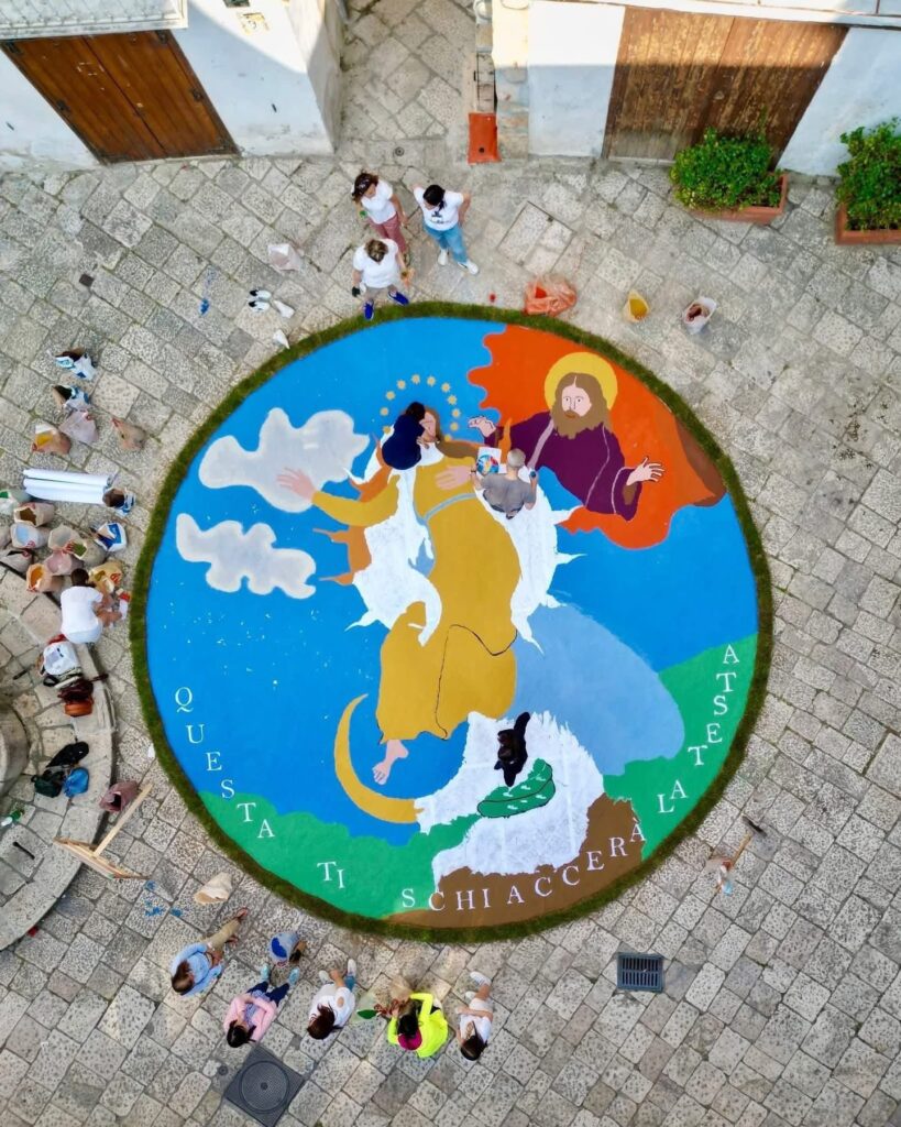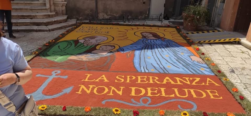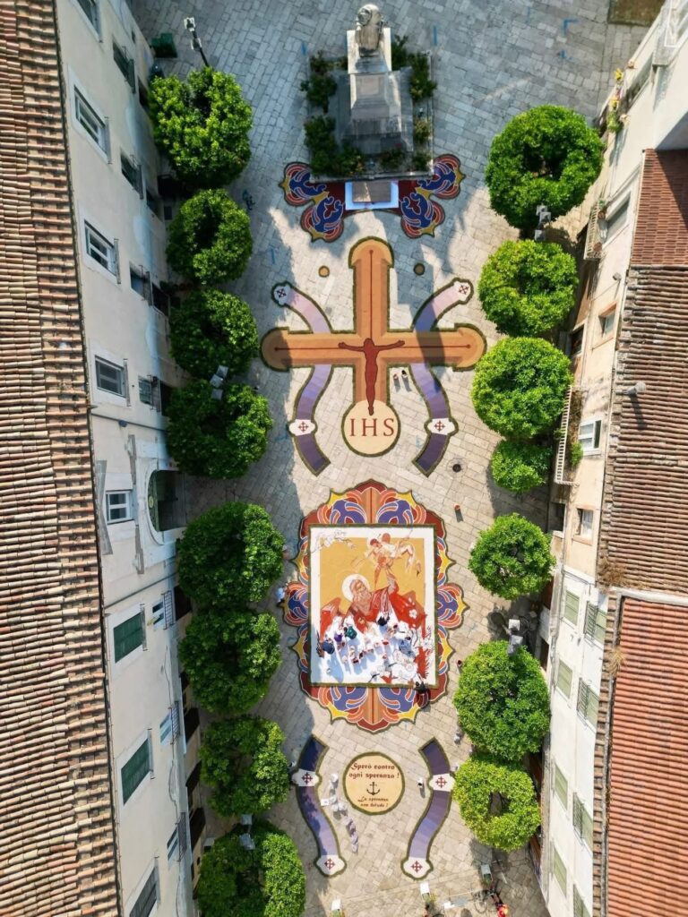 La solenne processione del Corpus Domini ha attraversato questi veri e propri quadri a cielo aperto, accompagnata da un clima di raccoglimento e partecipazione. I disegni floreali, ispirati a simboli religiosi e motivi artistici, sono stati il frutto di settimane di lavoro e condivisione, in un rito che unisce intere generazioni nel segno della tradizione.
