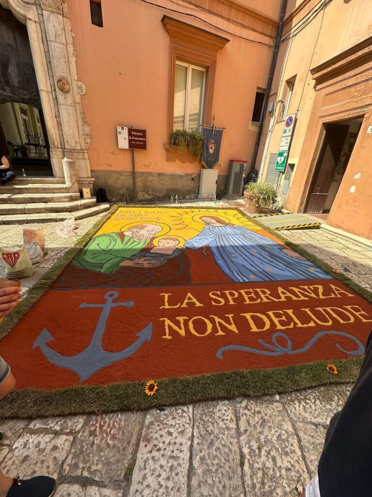 Le strade del centro storico, tra le più suggestive del Sannio, sono state decorate con maestosi tappeti floreali realizzati da mani sapienti e cuori devoti. Ogni composizione, curata nei minimi dettagli da volontari, gruppi parrocchiali e associazioni locali, ha raccontato attraverso i fiori i valori della fede, della bellezza e dell’identità collettiva.