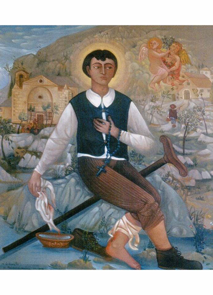 5 maggio: beato Nunzio Sulprizio, nacque a Pescosansonesco (Pescara) 13 aprile 1817, da un’umile famiglia. Nell’agosto 1820, muore il padre a soli 26 anni. Circa due anni dopo, la mamma si risposa, anche per trovare un sostegno economico, ma il patrigno tratta il piccolo Nunzio con asprezza e grossolanità. Il 5 marzo 1823, muore la mamma, Nunzio ha solo 6 anni e la nonna materna Rosaria Luciani lo ospita in casa, prendendosi cura di lui. Quando ha appena 9 anni, il 4 aprile 1826, gli muore la nonna. Nunzio ormai è solo al mondo ed è per lui l’inizio di una lunga “via dolorosa” che lo configurerà sempre più a Gesù Crocifisso. Solo al mondo, è accolto in casa, come garzone, dallo zio Domenico Luciani il quale subito lo “chiude” nella sua bottega di fabbro, impegnandolo nei lavori più duri, senza alcun riguardo all’età e alle più elementari necessità di vita. Spesso lo tratta male, lasciandolo anche senza cibo, quando a lui sembra che non faccia ciò che gli è richiesto. Alla domenica, anche se nessuno lo manda, va alla Messa, il suo unico sollievo nella settimana. Presto si ammala. Un rigido mattino d’inverno, lo zio lo manda, con un carico di ferramenta sulle spalle, in uno sperduto casolare. Vento, freddo e ghiaccio lo stremano. Lungo il cammino mette i piedi accaldati in un laghetto gelido. A sera rientra spossato, con una gamba gonfia, la febbre che lo brucia, la testa che scoppia. Va a letto, senza dir nulla, ma l’indomani non regge più. Lo zio gli dà come “medicina”, quella di riprendere il lavoro, perché “se non lavori, non mangi”. Si trova con una terribile piaga a un piede, che presto andrà in cancrena. La piaga ha bisogno di continua pulizia e Nunzio si trascina fino alla grande fontana del paese per pulirsi, ma di lì viene presto cacciato come un cane rognoso, dalle donne che, venendo lì a lavare i panni, temono che inquini l’acqua. Trova allora una vena d’acqua a Riparossa, dove può provvedere a se stesso, impreziosendo il tempo lì trascorso con molti Rosari alla Madonna. A un certo punto fu ricoverato per tre mesi all’ospedale “San Salvatore” dell’Aquila, ma le cure sono impotenti. Ritornato all’officina in uno stato doloroso, non poté continuare nel lavoro, pertanto lo zio paterno Francesco Sulprizio, militare a Napoli, lo inviò a Napoli con l’aiuto del colonnello Felice Wochinger, che prese ad amarlo come un figlio e per suo interessamento Nunzio fu ricoverato, il 20 giugno 1832, all’Ospedale degli Incurabili. Per circa due anni, soggiorna tra l’ospedale di Napoli e le cure termali a Ischia, ottenendo qualche passeggero miglioramento. Lascia le stampelle e cammina solo con il bastone. Dall’11 aprile 1834, il colonnello per curarlo meglio, lo condusse con sé nel Maschio Angioino, allora adibito a caserma, mentre il male avanzava inesorabilmente. Presto però, all’iniziale miglioramento, segue l’aggravarsi delle sue condizioni fisiche: in fondo si tratta di cancro alle ossa e non c’è cura che serva. Le sofferenze sono acutissime, tanto che i medici pensavano di amputargli la gamba; vi rinunciarono però data l’estrema debolezza del giovane. Morì il 5 maggio 1836, a soli 19 anni.