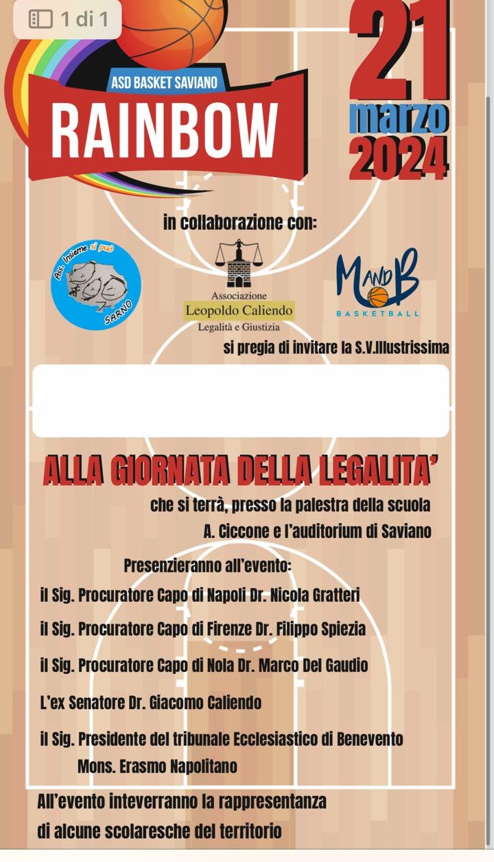 Si terrà martedì 21 marzo alle 10 a Saviano la Giornata della Legalità, un evento organizzato dall’ASD Basket Saviano in collaborazione con l’Associazione Leopoldo Caliendo e con il patrocinio del Comune di Saviano. La giornata sarà dedicata alla promozione della cultura della legalità e della giustizia, con la partecipazione di importanti personalità del mondo istituzionale e giudiziario. Ospiti d’onore della manifestazione saranno il Procuratore Capo di Napoli Nicola Gratteri, il Procuratore Capo di Firenze Filippo Spiezia e il Procuratore Capo di Nola Marco Del Gaudio. Interverranno inoltre l’ex Senatore Giacomo Caliendo, il Presidente del Tribunale Ecclesiastico di Benevento Mons. Erasmo Napolitano e rappresentanze di alcune scolaresche del territorio.