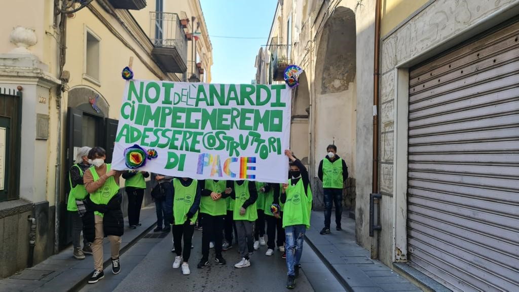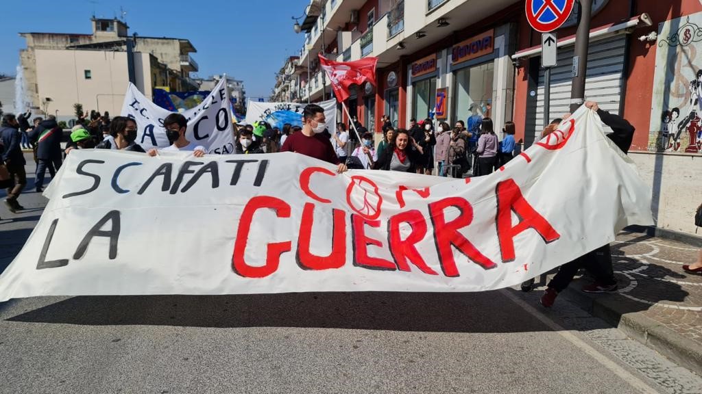 Oltre mille le persone che hanno aderito alla Marcia per la pace promossa ed organizzata dall’Amministrazione comunale in collaborazione con i dirigenti degli istituti scolastici presenti sul territorio. Un lungo serpentone partito da piazza Vittorio Veneto che ha attraversato le principali strade della città per dire “no” alla guerra. In tanti hanno sfilando, dagli amministratori ai dirigenti, dagli studenti ai cittadini, tante le bandiere della pace e striscioni contro la guerra. A guidare la marcia il Sindaco Cristoforo Salvati: “E’ stato un momento di aggregazione straordinario – ha commentato – una mattinata all’insegna dell’unità, della legalità e della solidarietà per il popolo ucraino, ma soprattutto un momento di formazione per gli studenti.