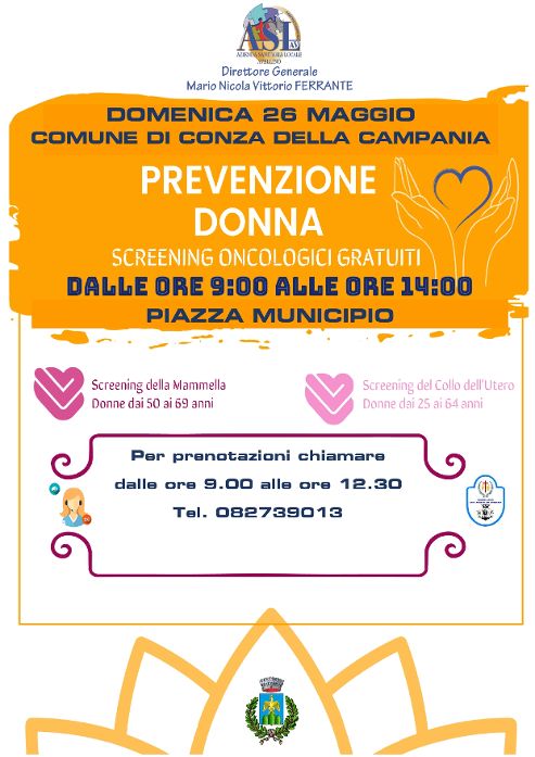 Domenica 26 maggio, in collaborazione con il Comune di Conza della Campania, con il supporto della Misericordia, i Camper dell’ASL faranno tappa in Piazza Municipio dalle ore 9.00 alle ore 14.00.