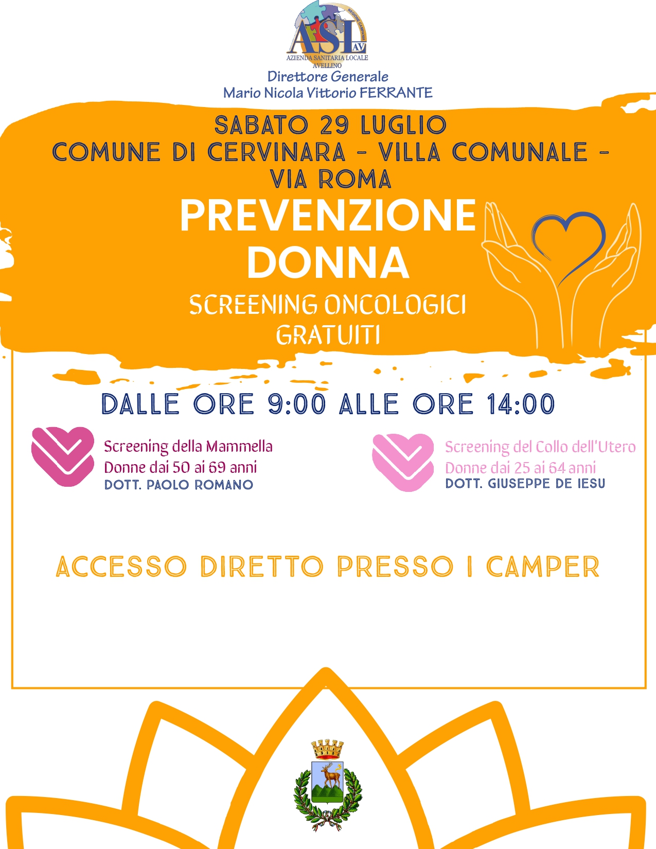 Sabato 29 luglio le unità mobili dell’ASL faranno tappa ad Cervinara (spazio adiacente la Villa Comunale – Via Roma).