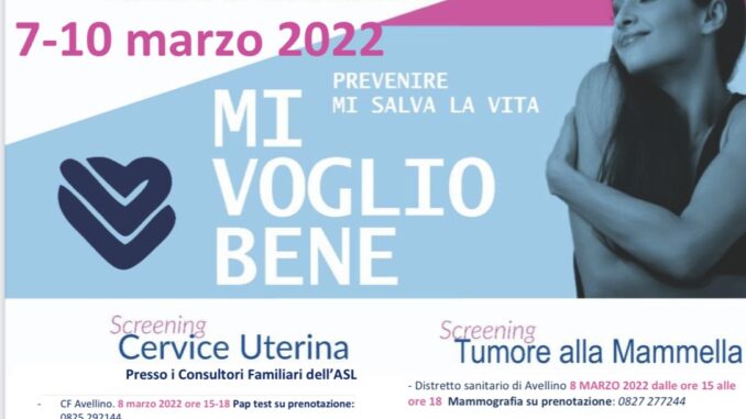 Presso i Consultori Familiari dell’Azienda Sanitaria Locale, previa prenotazione, sarà possibile effettuare lo Screening della Cervice uterina eseguendo gratuitamente ilPap test per la fascia di età 25-64 anni; inoltre, l’8 marzo 2022, in occasione della Giornata internazionale della donna, nei Centri Screening della Mammella presso il P.O. “Criscuoli-Frieri” di Sant’Angelo dei Lombardi e presso il Distretto di Avellino sarà possibile effettuare gratuitamente, previa prenotazione, la mammografia per la fascia d’età 50-69 anni. L’8 marzo in piazza Enea Franza (Località Calvario) ad Ariano Irpino saranno presenti i Camper della Salute dell’Asl per lo screening della Mammella e della Cervice uterina.