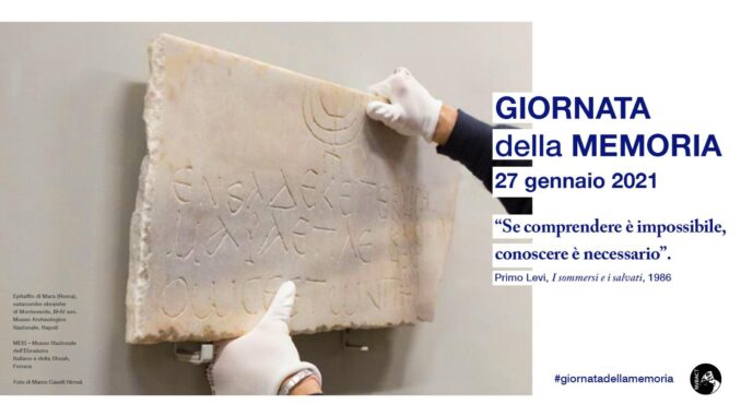 “L’immagine scelta dal Ministero per questa edizione della Giornata della Memoria è di per sé emblematica: l’”Epitaffio di Mara”, proveniente dalle catacombe ebraiche di Monteverde a Roma conservato al Museo Archeologico Nazionale di Napoli ed esposto al MEIS di Ferrara, ci racconta di una convivenza millenaria tra credi, popoli e culture nel nostro territorio. Una lunga storia, che ha fatto dell’ebraismo italiano uno dei caratteri originali della nostra identità nazionale, improvvidamente rinnegato con l’abominio della promulgazione delle leggi razziali. La decisione di escludere parte di sé dal corpo della nazione ha avuto conseguenze dolorose per il nostro Paese, una ferita profonda gravida di conseguenze ancora attuali. Una vergogna che ha contribuito alla discriminazione, segregazione, deportazione e sterminio di migliaia di ebrei italiani sulla base di una folle teoria della razza”.
