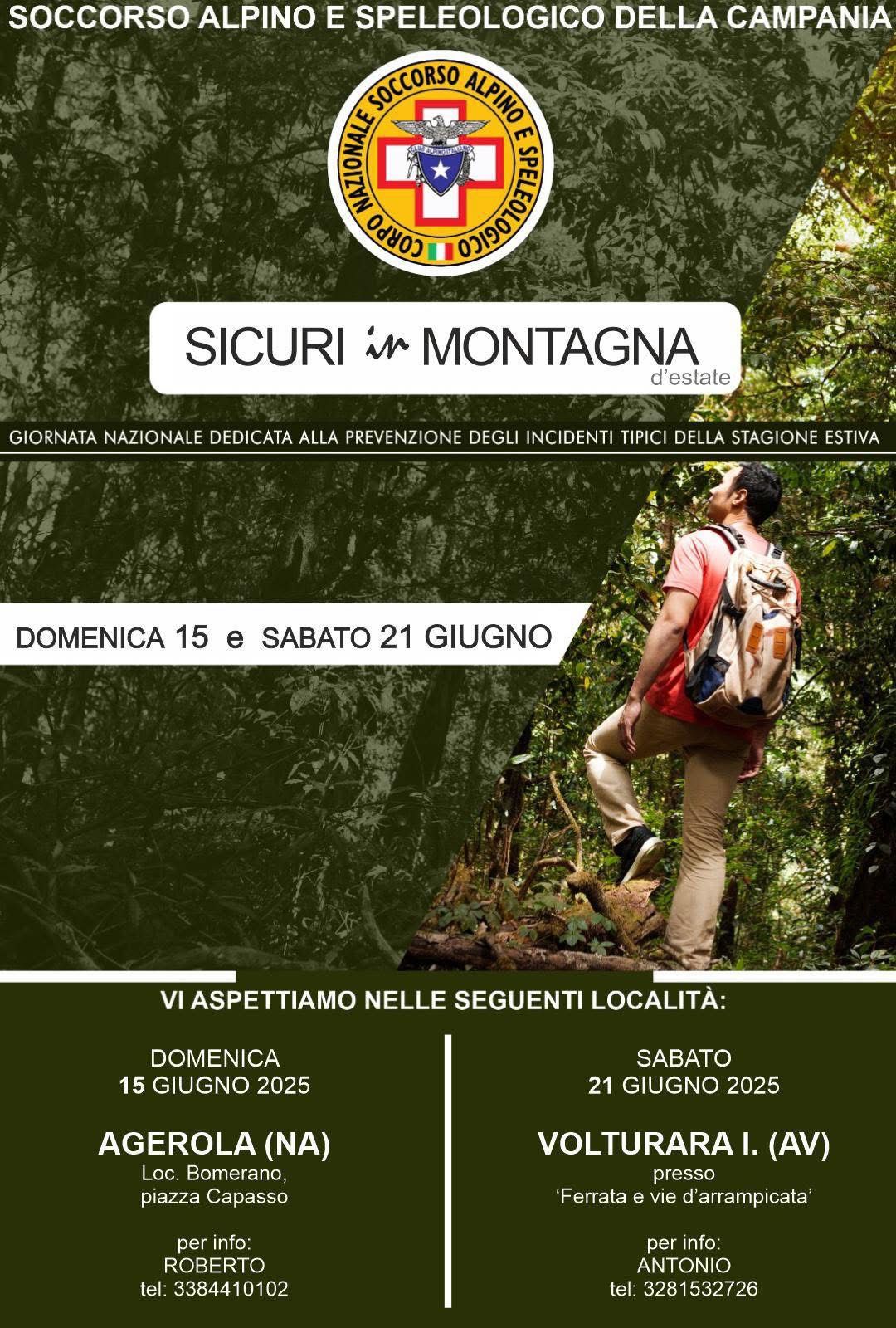 Anche per l’estate 2025 torna “Sicuri in Montagna”, l’iniziativa nazionale promossa dal Soccorso Alpino e Speleologico della Campania per sensibilizzare escursionisti e appassionati sull’importanza della prevenzione durante le attività all’aria aperta. Due gli appuntamenti in programma nella regione, dedicati a informare il pubblico sui comportamenti corretti da adottare per vivere la montagna in sicurezza nella stagione estiva, quando si registra un picco di incidenti per imprudenza, inesperienza o condizioni meteorologiche avverse.