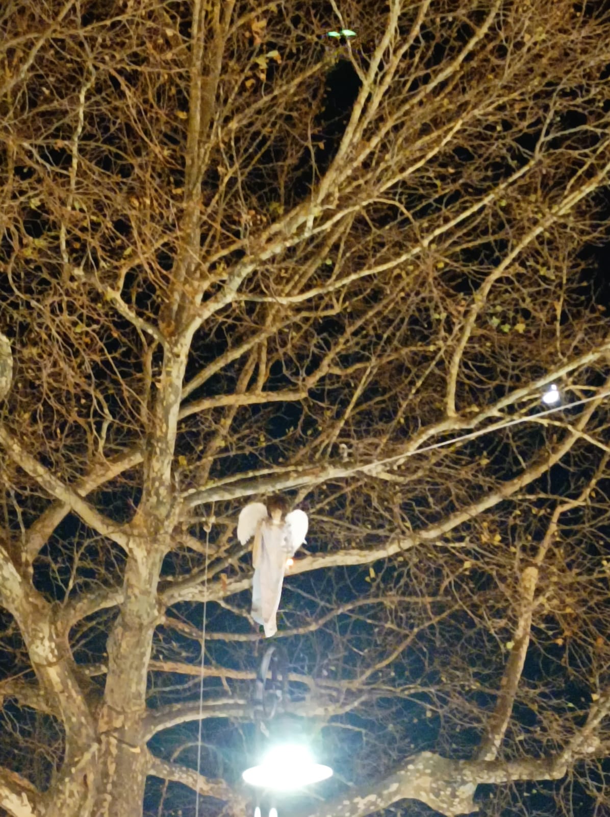 Tutti i bambini che circondavano l’albero sono rimasti stupiti nel vedere l’angelo in volo. Tutti i discenti hanno intonato canti natalizi, allietando le centinaia di persone presenti.