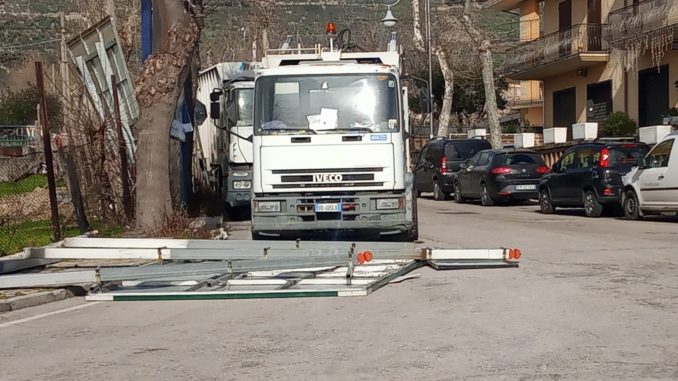 E’ a terra da i eri sera in viale Michelangelo a Sirignano una delle tante tabelle 6×3 pubblicitarie disseminate sul territorio e che il vento a buttato giù. Ieri l’intervento dei Carabinieri e dei Vigili del Fuoco per gli accertamenti del caso, oggi il grosso tabellone pubblicitario è ancora lì, ma a sua protezione degli automezzi parcheggiati per impedire agli automobilisti di impattare con la grossa struttura in ferro.