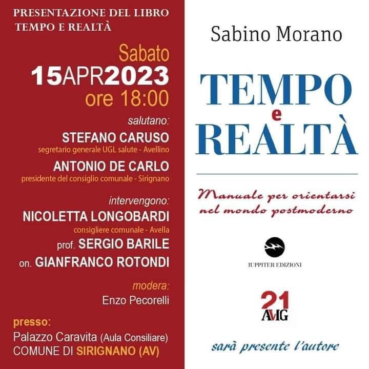 SIRIGNANO. “Tempo e realtà”, oggi presentazione del libro di Sabino Morano 15/04/2023 binews.it ATTUALITA', EVIDENZA, SIRIGNANO 0