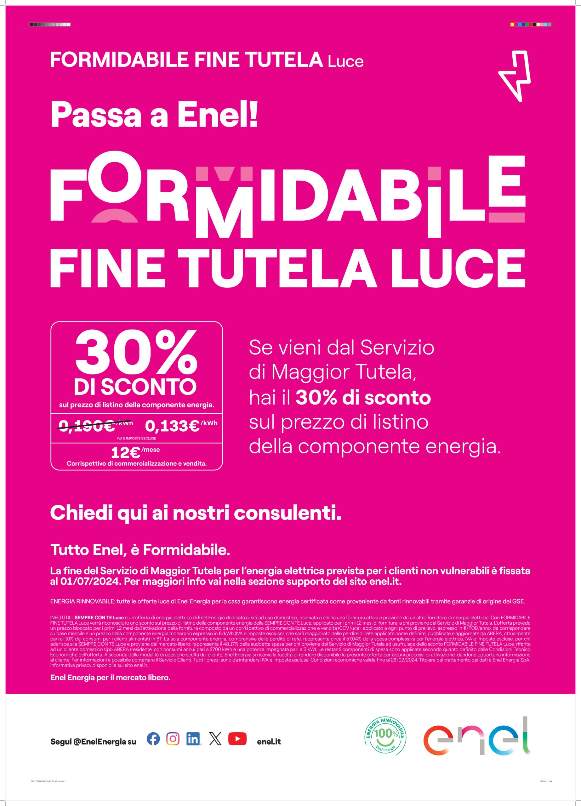 La promozione si rivolge a tutti coloro che decidono di abbandonare il Servizio di Maggiore Tutela per passare a Enel. Lo sconto del 30% si applicherà sulla componente energia, rappresentando un notevole vantaggio economico per gli utenti che scelgono di aderire a questa offerta.