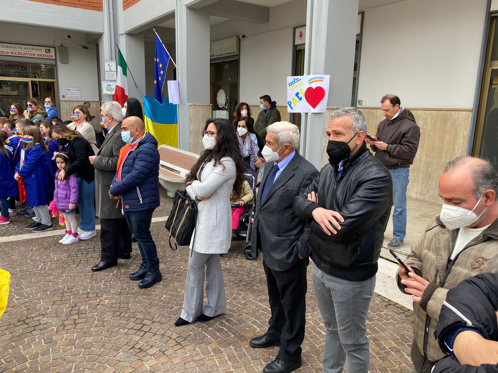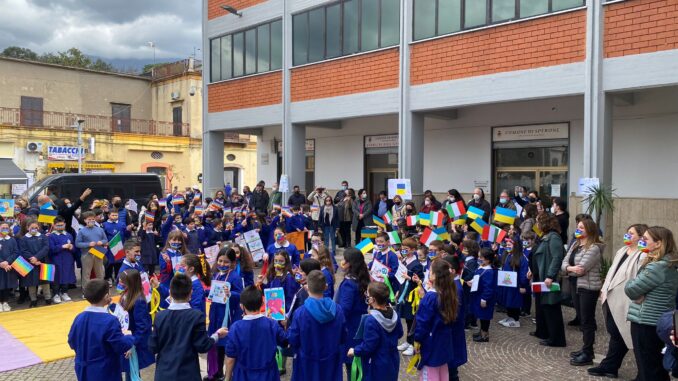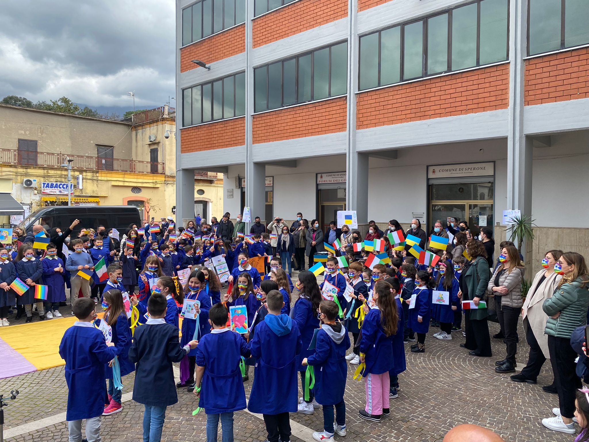 Si è svolta questa mattina a Sperone l’iniziativa organizzata dalla scuola Primaria “Ennio Pulcrano”, la marcia della Pace. Gli alunni del plesso di via Sant’Elia dell’istituto Comprensivo “Giovanni XXIII” hanno marciato per le strade cittadini sventolando bandiere inneggiando la pace con tanti cartelloni per dire no alla Guerra. Il corteo ha raggiunto poi la piazza Luigi Lauro dove ad accoglierli c’erano le massime autorità cittadine, con il primo cittadino Adolfo Alaia. Qui dopo il discorso del Dirigente Scolastico prof. Vincenzo Serpico, del sindaco Alaia e del parroco Don Reinaldo i bimbi si sono esibiti con balletti e leggendo messaggi di pace. In allegato il video e le foto.