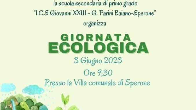 Il 3 giugno presso la Villa comunale di Sperone si terrà la “Giornata Ecologica“ una manifestazione in collaborazione con l’Associazione Nazionale “I Paesi più Sostenibili d’Italia” e l’I.C.S Giovanni XXIII-G.Parini Baiano-Sperone per sensibilizzare il tema della salvaguardia dell’ambiente. L’evento avrà inizio alle ore 9:30; verranno distribuiti cappellini e gadget, attrezzature e utensili per una pulizia “simbolica” della villetta. Seguiranno varie attività, tra cui la piantumazione di un albero. Ingresso libero a tutte le famiglie: “Tuteliamo insieme il nostro ambiente”