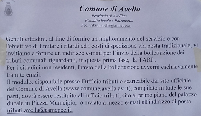 AVELLA. Tasse e ritardi alle poste, ecco l’ultimo avviso del Comune. FOTO