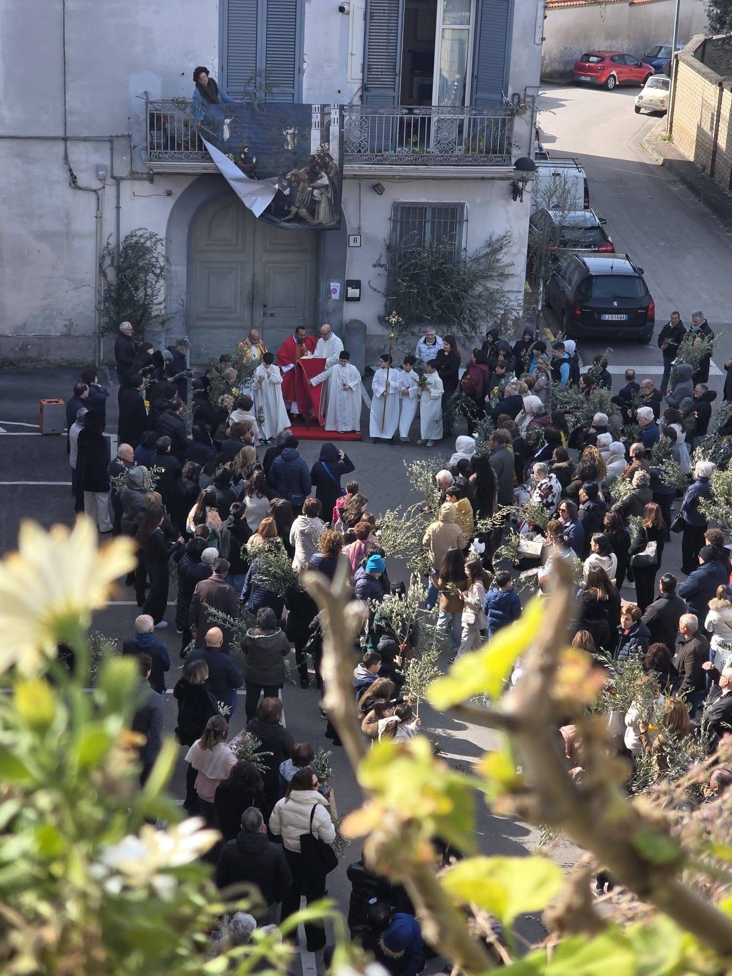 Numerosi fedeli, tra famiglie, bambini e anziani, hanno preso parte alla cerimonia stringendo tra le mani rami di ulivo e palme, simbolo di pace e rinnovamento. Un colpo d’occhio suggestivo, che ha trasformato il largo in un luogo di raccoglimento e condivisione.