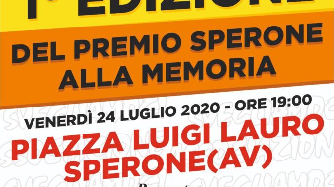 Domani 24 luglio alle ore 19, in piazza Luigi Lauro, si svolgerà la prima edizione del premio Sperone, quest’anno si premieranno coloro che hanno fatto tanto per Sperone, coloro che hanno lasciato un segno e che oggi non ci sono più. Illustri cittadini di Sperone e personaggi storici legati alle tradizioni speronesi che nel corso del 900 si sono distinti nelle loro diverse attività. “UN PAESE CHE NON HA MEMORIA DEI LORO FIGLI, NON PUÒ AVERE FUTURO”. Così conclude l’organizzatore e il presidente di Svegliamoci, Pasquale Muccio.