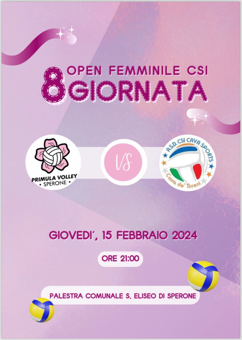 Questa sera, giovedì 15 febbraio 2024, alle 21 presso la Palestra Comunale S. Eliseo di Sperone (Scuole Elementari) la squadra di pallavolo femminile “Primula Volley Sperone” giocherà la prima gara casalinga contro ASD CSI CAVA SPORTS di Cava de’ Tirreni.